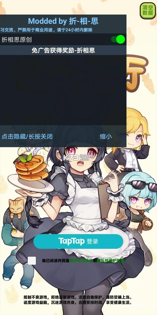 破解内容:内置破解菜单免广告 卸载taptap和tap加速器