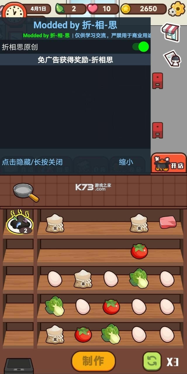 5、为玩家提供各种食材,免费提供给玩家,玩家可以自由制作