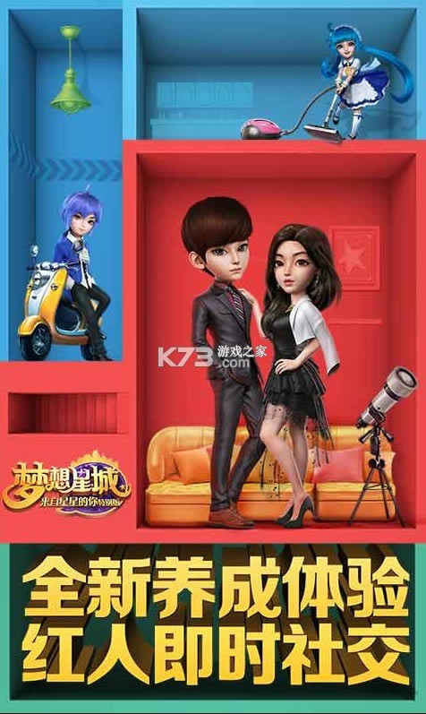 梦想星城是一款以都市生活为背景,模拟养成为核心的红人即时社交手游。玩家在星城的生活将从装扮自己的小家开始。700逾件交互式家具,随心打造你的专属家具风格;房间扩充、楼层扩建,实现你的豪宅梦想;贴心男女管家赛巴斯和玛利亚,24小时为你服务。你还能精心栽培农务庄稼,体验田园式生活;更有私人店铺,用心经营走上致富之道。