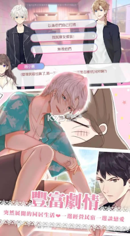 成为公寓管理员,与4位性格各异的帅哥角色一起互动,当好感度达到一定程度时即可解锁专属恋爱剧情,游戏提供完整版配音,声音酥软撩人。以少女的视角讲述恋爱的故事,男角色很多,你可以根据喜好选择你的mr.R,在度假屋之中开启浪漫的旅途。