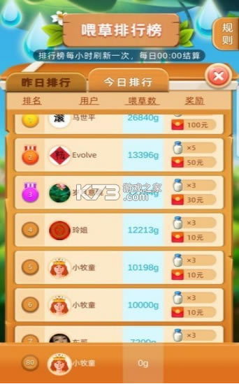 4、实时的排行榜,这个排行榜是可以看到玩家之间的财富值,看看谁才是真正的农场富豪;