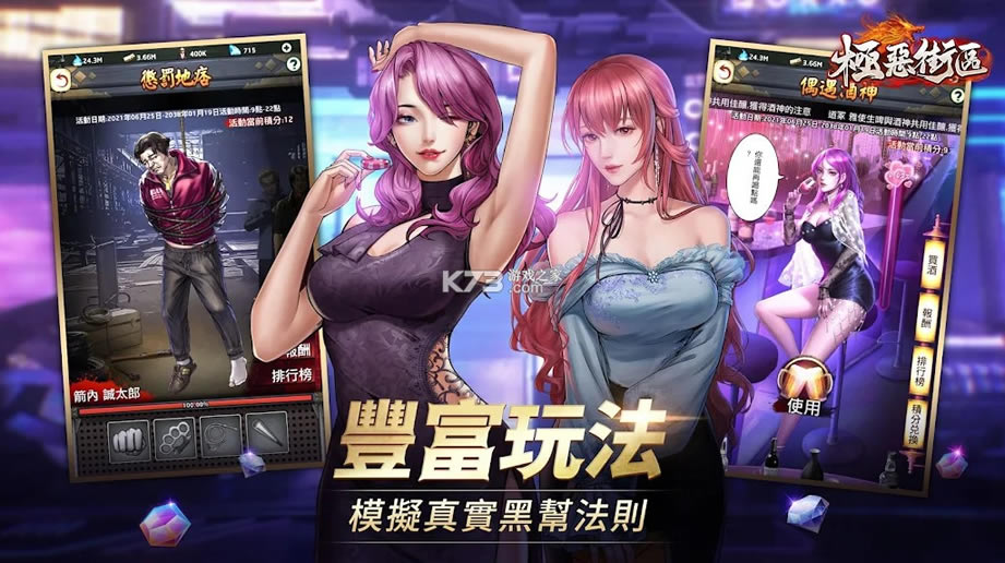 《极恶街区极道游戏》是款黑帮题材的模拟养成手游,你将扮演一名黑帮人员,需要想办法促进黑帮发展,同时结交不同的美女,提升自己的影响力,慢慢向上爬,最终坐上最崇高的那把座椅。