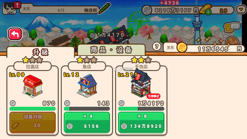 不断升级店铺的规模,升级商店的等级,提高店铺的知名度,尽情发挥你的商业天赋。