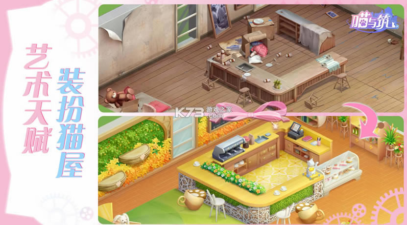 仙气飘飘海洋系,粉色梦幻公主房,百亩森林童话风……你想要的家装风格都可以在游戏中换置!后期更有猫咪咖啡厅、猫咪医院等场景开启,打造属于你独一无二的喵呜小镇。