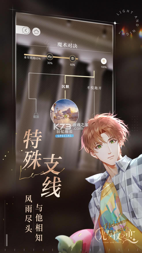 《光与夜之恋》是一款高沉浸互动恋爱手游,汇聚国内外顶级CV、殿堂级作曲家、超一线画师及豪华编剧团队,倾力营造与众不同的真实恋爱氛围。多线剧情,命运抉择,为你带来全新的高沉浸恋爱互动体验。