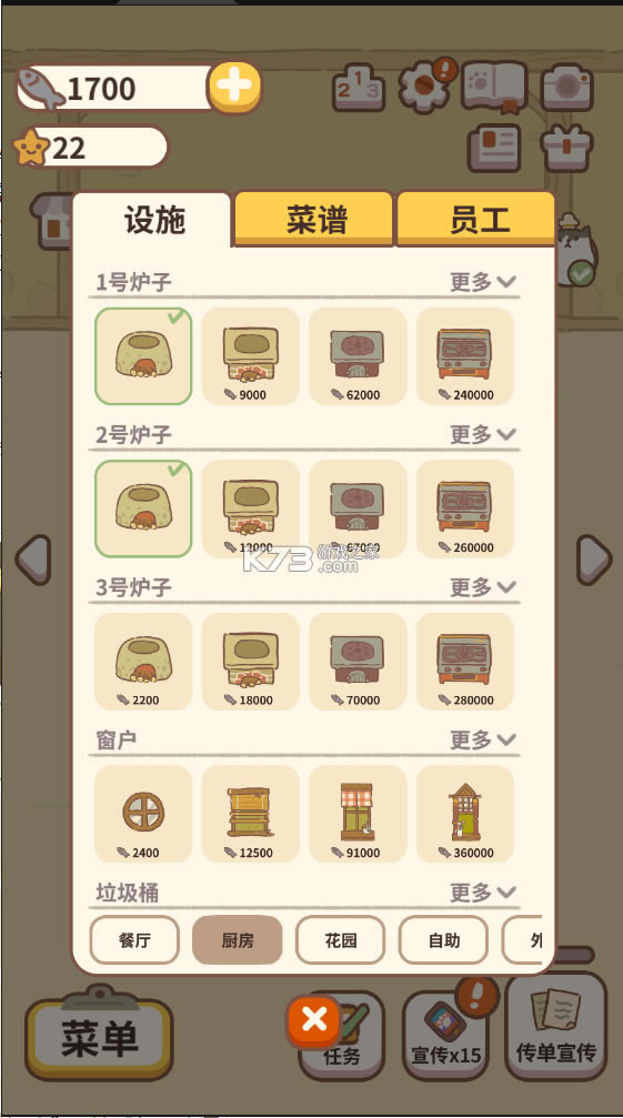多样创意餐厅设施自由的解锁,让你的餐厅能够获得更多的流量,变得火爆。