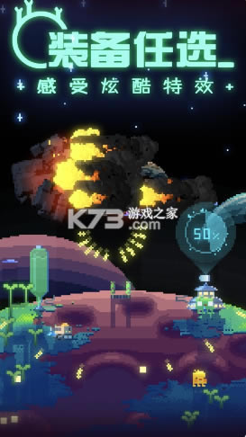 采用了经典的迷你像素风格,为玩家打造了一个充满清新的绿色外星球;