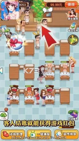 《洗浴之王红包版》这是一款模拟洗浴池的经营游戏,不断的招募更多的员工来服务顾客,让每个客人都能感到满意,高度还原了生活中泡澡搓澡的画面,感受洗浴之王的经营乐趣。