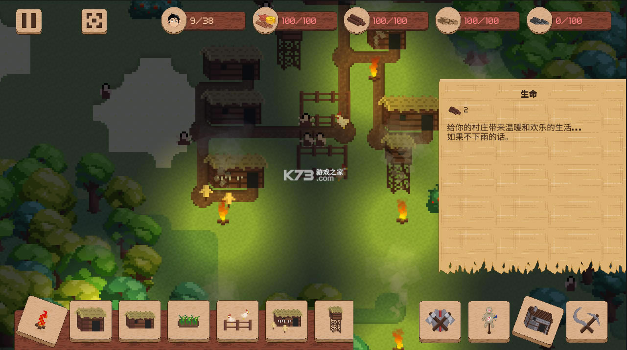 像素风格,融合模拟经营和策略战争,必须通过收集资源,扩大村庄规模,保护它免受不同时代的敌人攻击,推进文明。