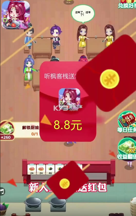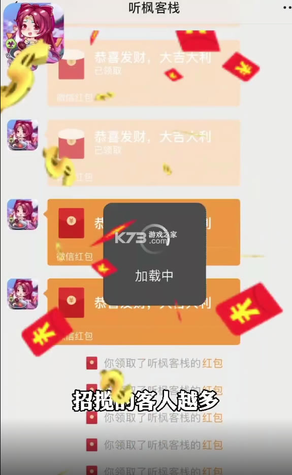 《听枫客栈红包版》一款在快手上很火的经营赚钱游戏,玩家在游戏中经营属于自己的客栈,通过客栈不断的赚取更多的收入,不定时的红包雨让你轻松拿红包,随时都可以提现,感兴趣的朋友快来下载吧。