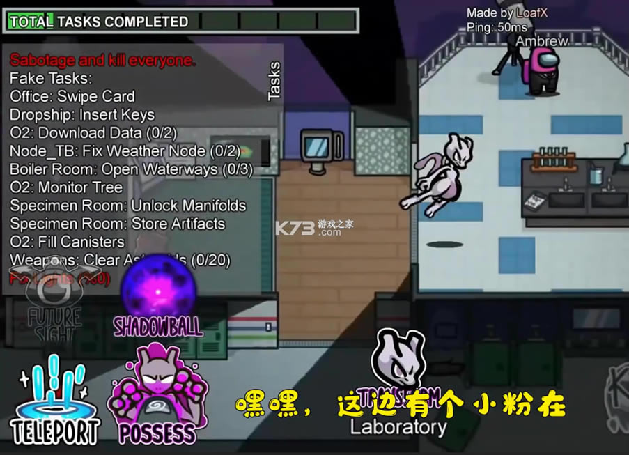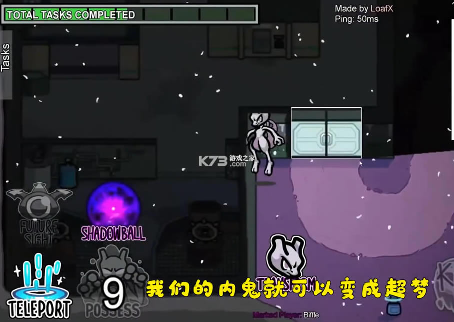 《among us超梦模式中文版》这是太空狼人杀among us全新的超梦模式,游戏中内奸可以变身为大家熟知的神器宝贝超梦,拥有瞬间移动以及控制船员的强大技能,大家快来这个新模式中感受一下吧。
