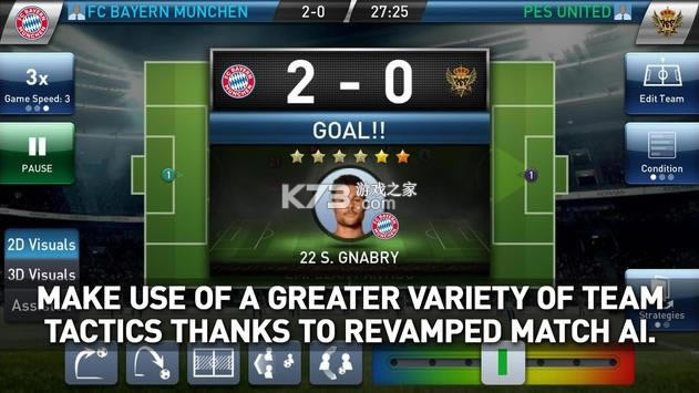 透过高标准3D图形,体验真实的足球比赛,或透过2D动画画面实时分析战术。