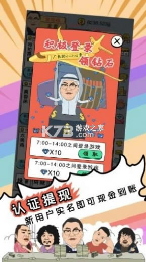 《戏精梦工厂》一款非常魔性的模拟经营游戏,玩家在这里可以完成各种各样的剧情任务,不断的去培养更多的知名网红,看到所有漫画式的明星,完成游戏中的任务还可以直接赚钱提现。