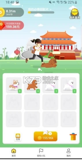 新用户简单把狗狗升在三级就可以获得一只限时的分红犬,分发犬进度可以由类型模式的综合合成