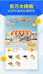 2、食物合成每秒赚金币,从38级开始体验店铺合成玩法,抱着金饭碗赚红包;
