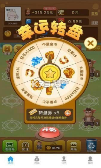 2.体验好玩的转盘模式,除了金币,宝箱,还有代金券哦,试试运气吧;