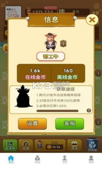 3.最趣味的合成游戏,努力培养出高级的牛牛,然后产生更多收益,不断积累吧!