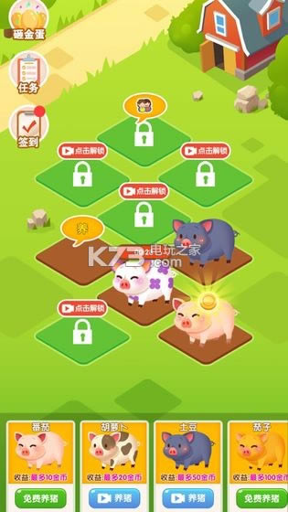 3、在这里将有着十分有趣的玩法趣味,购买更多的猪仔,记性投喂