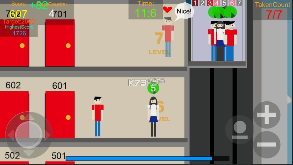 很虎逼的控制模拟一台电梯最优运输在楼层等待的人们,如果不想被乘客谩骂就快点运输他们吧,不然它们堆得会越来越多哦