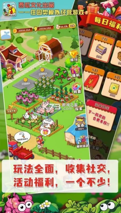 《西瓜文化开心庄园》app是才推出的一款赚钱游戏了,开心庄园是小吃街同系列模拟赚钱手游,在本手游里面支持进行农作物的种植和收割了,轻松完成模拟体验,有着更多好玩内容。
