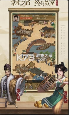国画水墨风的经营类手游,在这款游戏中,你穿越到中国古代商业最繁华的时代北宋!在汴梁作为一家客栈的打工人店小二,你怎能甘心?每天996为老板拼命,求的就是一个翻身的机会!从打工人做起,一步一步成为真正的大财阀吧!如果感兴趣,赶紧来下载!
