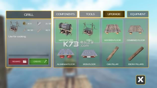 抓住漂浮的碎片,将你的木筏扩大到堡垒的大小。制作辅助工具,加快获取资源的过程。