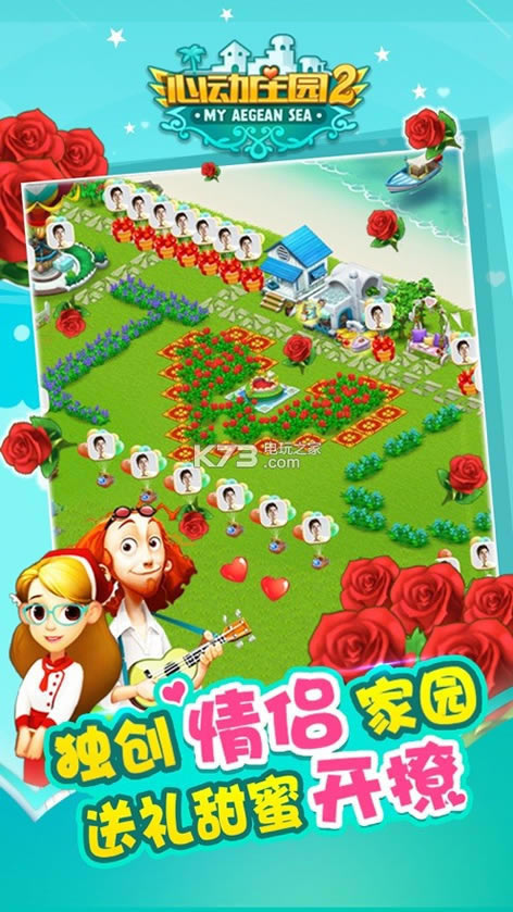 游戏内具有丰富的社交玩法,玩家可以天天享受邂逅美女女神的惊喜、表白的心动、小恩爱的甜蜜、甚至是分手百感交集!独创的二人共建梦幻庄园恋爱玩法,为你提供了前所未有的浪漫体验。饲养宠物、抢车位玩法更是一大特色。