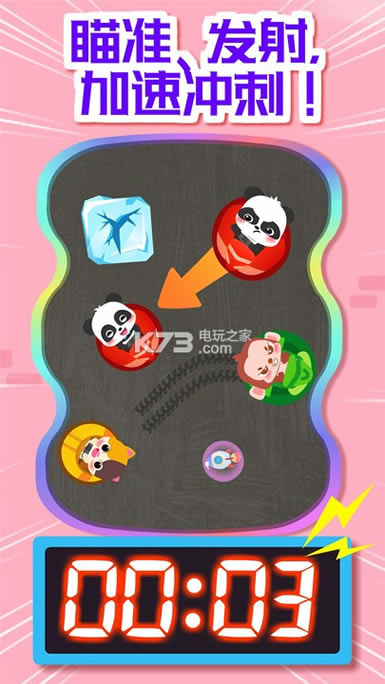 惊险的限时赛开场啦,宝宝赶快抓紧时间,寻找、撞击并消除相同颜色的碰碰车;