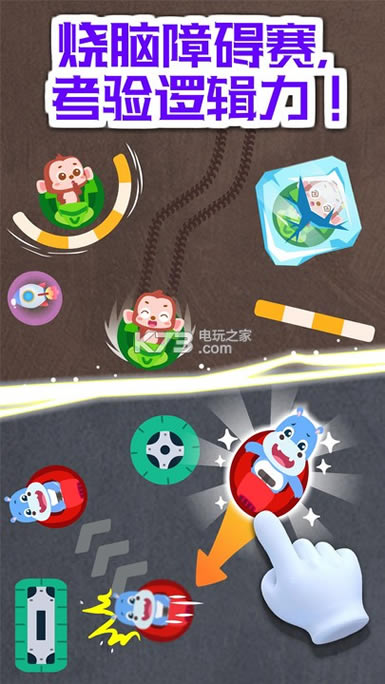 冰块把小伙伴困住了,宝宝快开动碰碰车,撞碎冰块,营救伙伴;