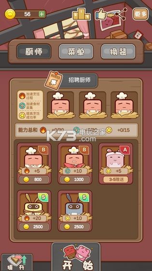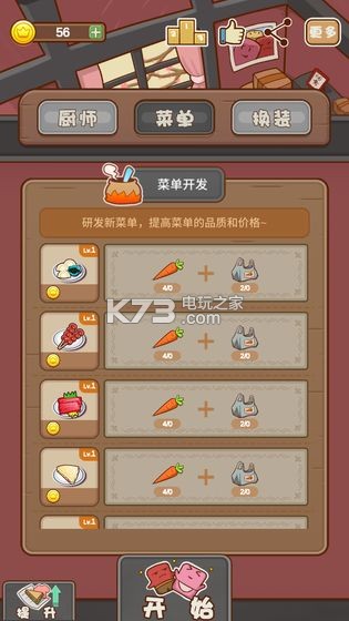 3、所有的角色都可以换装,除了餐厅的厨师装之外还有其他的时尚服装可以更换。