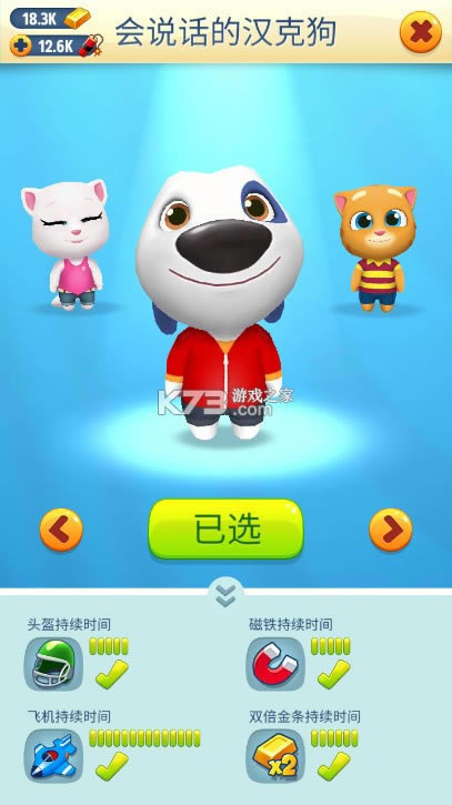 玩家可以在跑酷过程中解锁会说话的安吉拉、金杰猫、狗狗本和汉克狗!