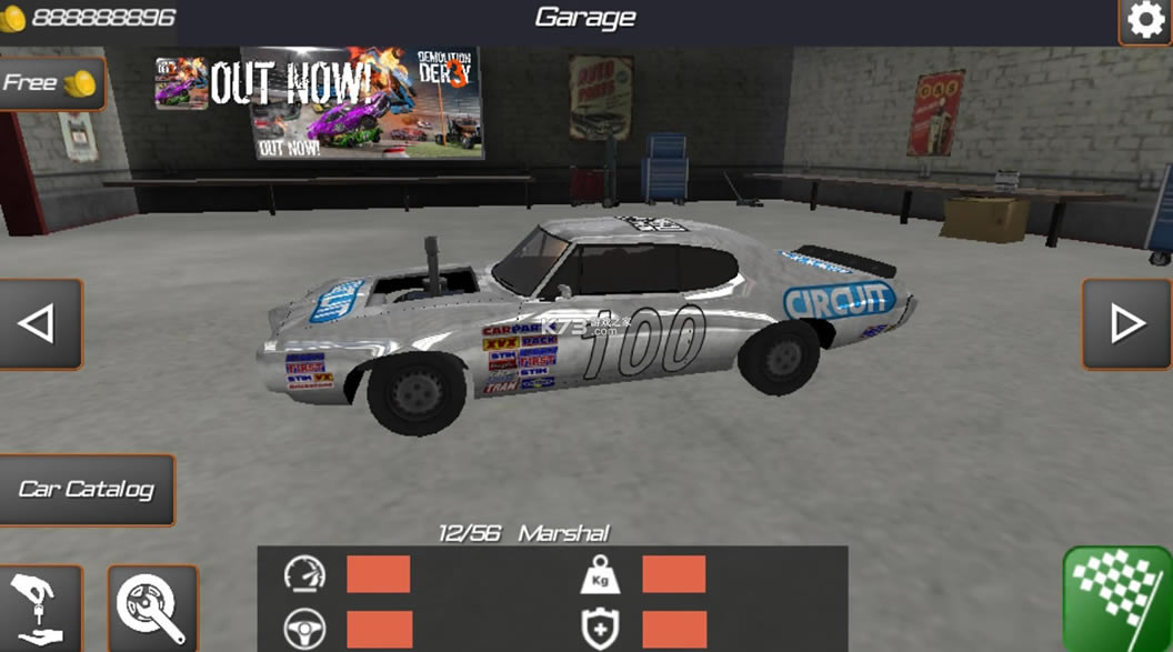 很适合发泄的游戏,刚进去的时候是小破车,随着比赛获得的金币,玩家可以购买各种赛车,买车之前,玩家还能试驾,驾驶汽车到公路上尽情的撞击破坏吧,反正又不花钱!