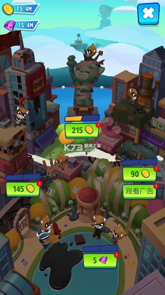 技巧收集关卡沿途金币,解锁新的皮肤,打造英雄实力与技能,追击与躲避间,发挥实力对抗阻拦浣熊
