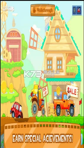 1、游戏风格卡通可爱,游戏背景是一个汽车世界,有点类似汽车总动员,其实就是一款汽车酷跑游戏。