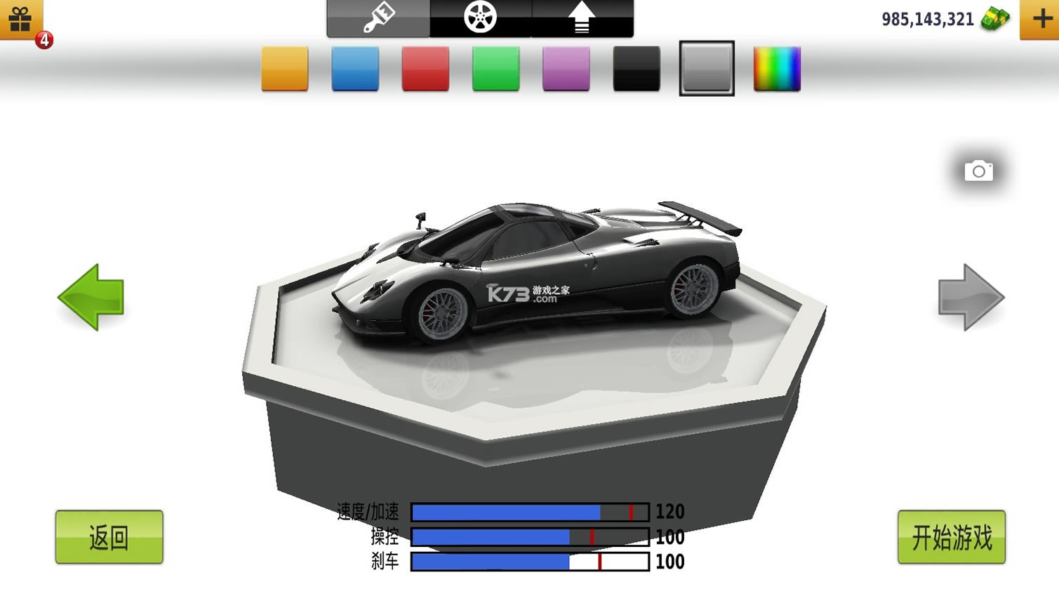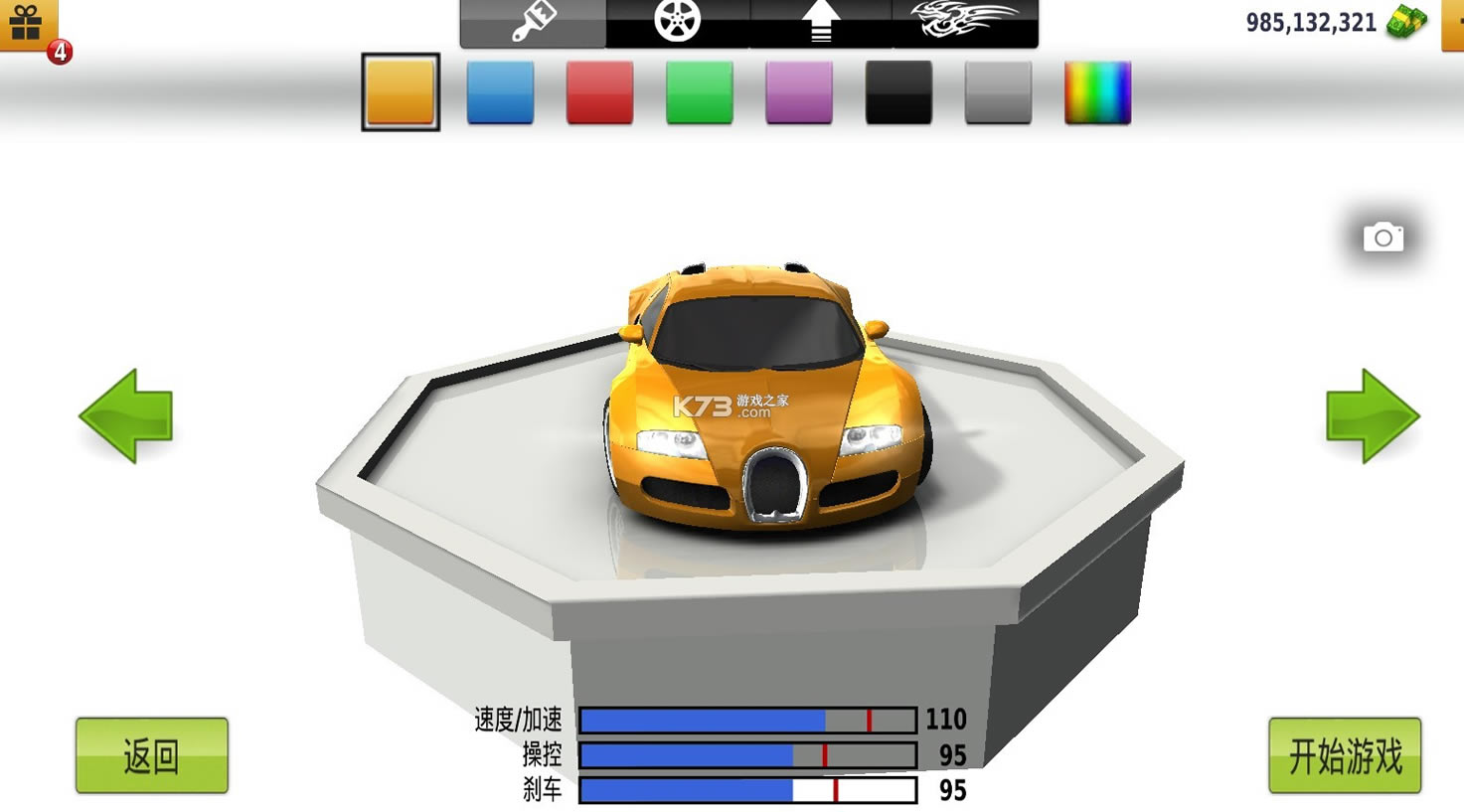 个性化的改装你的爱车,使用各式各样的喷涂,轮毂,尾翼,以及车牌让你的爱车变得与众不同