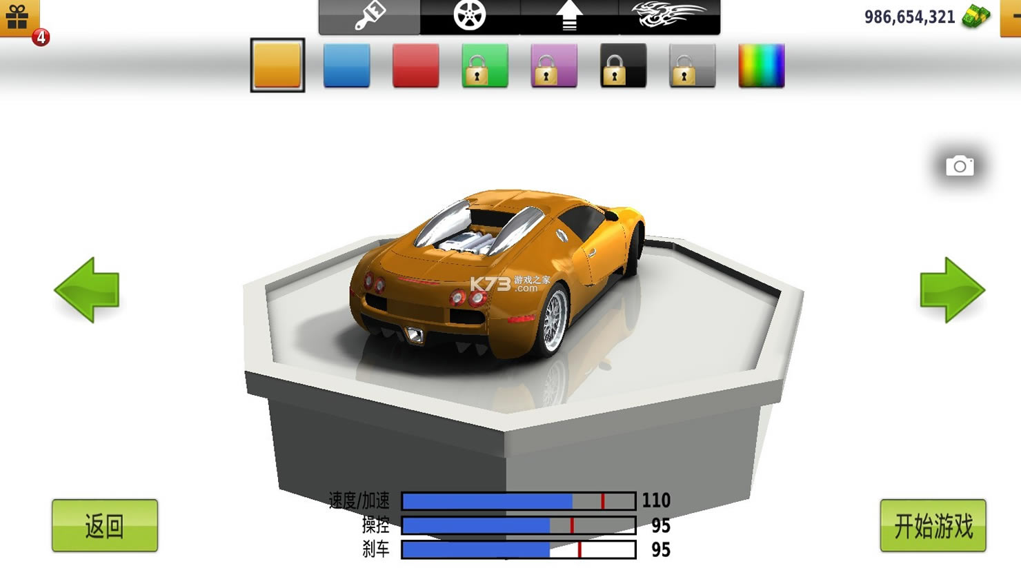 个性化的改装你的爱车,使用各式各样的喷涂,轮毂,尾翼,以及车牌让你的爱车变得与众不同