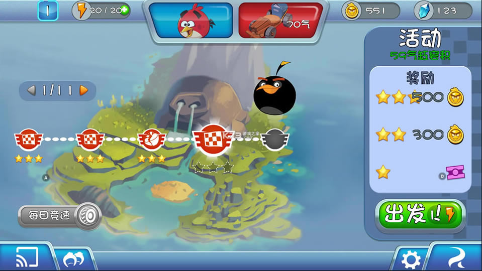 结识来自年度最大高山速降竞速游戏的人物,并每天赚取积分,以争取在即将到来的 Angry Birds Go! Plus 中获得奖励。
