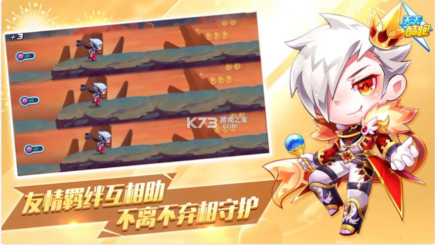 《天天酷跑》是腾讯游戏研发的一款休闲类手机跑酷游戏,在沿袭传统玩法的基础上,特别加入了闪靓坐骑、萌动宠物等一系列心动设计,为玩家带来最为得心应手的跑酷体验!