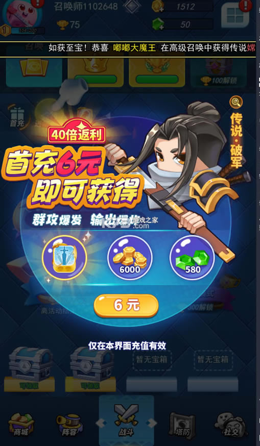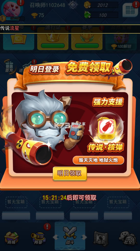 《欢乐对决》打造全新的游戏对决,玩法超级多,在这里包含了对战竞技、合作模式和召唤模式,连续签到就领传说核弹以及随机传说,首充6元即可获得超级多的金币和钻石福利,领任务获胜领豪礼。