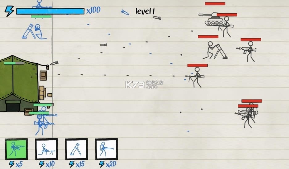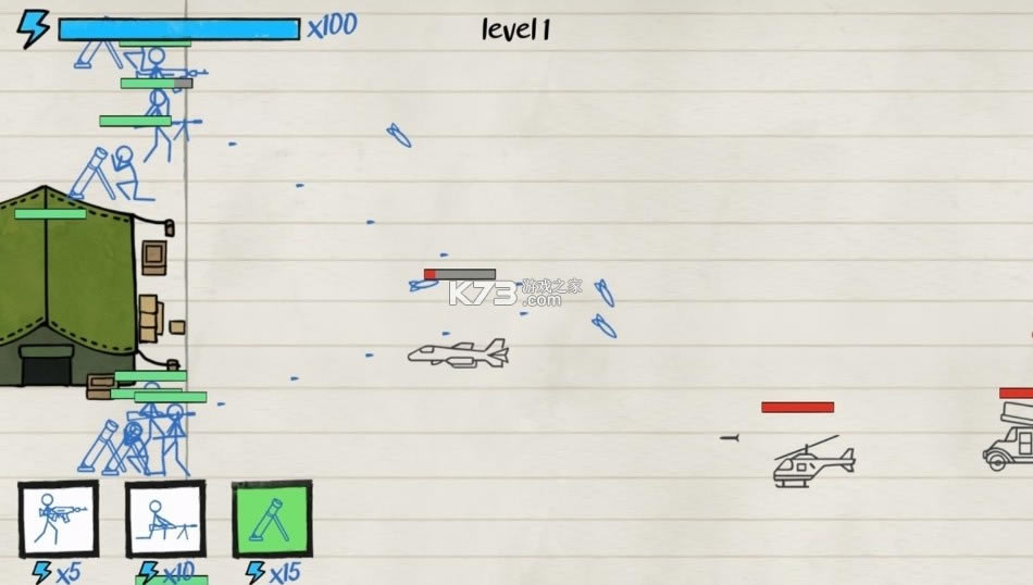 《纸上谈兵》游戏可以在绘制的纸上世界尽情的挑战了,所有的都是绘制风格的,能够完美的完成搭配了,需要获取不同的兵种进入战斗,成为指挥官进行作战吧。策略性十足的一款手机游戏了。