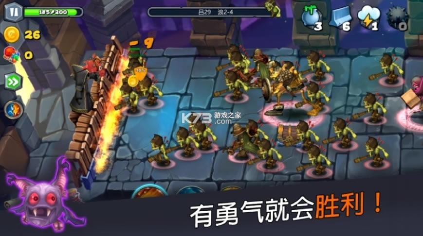 一个策略战斗类的游戏,每一个玩家在操作这个游戏的时候,一定要让你的大脑非常灵活才可以,同时你也要注意去收集各种各样的英雄人物,你们组建成一个非常强大的团队才能够抵制这些敌人对你的攻击,而且一定要不断地建造防线才可以。