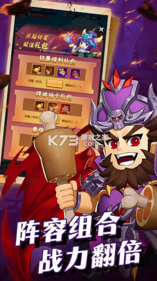 更开创独有的武将单挑系统,两军交战,斗将先行,兵刃交锋,生死就在一瞬间!胜则军队气势大增,败也可利用阵容搭配逆风翻盘,超高的策略性玩法,斗智斗勇尽显英雄本色,带来无尽的挑战和乐趣。阵营混搭,激活羁绊无需上阵,灵活运用计策,巧妙搭配队伍,越级闯关!