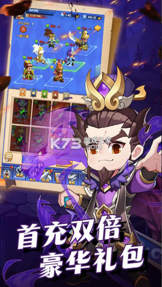?三国英雄豪杰齐聚一堂,精致的美术画风和技能动作特效,极度还原三国人物关系,形成组合技能和羁绊。游戏内包含丰富竞技玩法,让你身临其境当起主公的快感。三国题材竖版回合制震撼来袭!