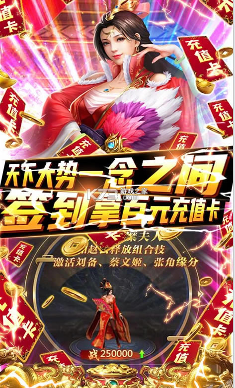 热血冲锋!三国为王称帝,尽在一念之间!采用横版冒险即时操作模式英雄美女相遇开启战斗新章,神兵锻造之后重新握在手中,屠龙之力加身英雄再战副本终章