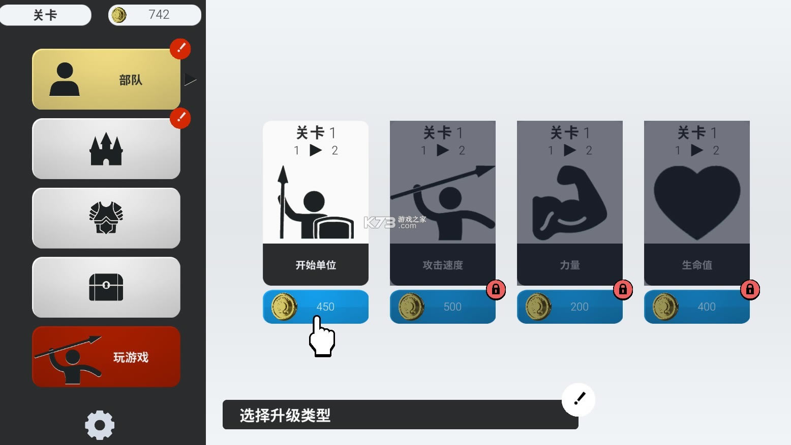 新的单位将帮助你。通过升级、电源、独特的设备和技能,尽可能地进步。只有快速抽屉才能抵御敌军。使用盾牌、标枪、长矛等击倒对手。看着它们坠落时粉碎成精灵的尘土。