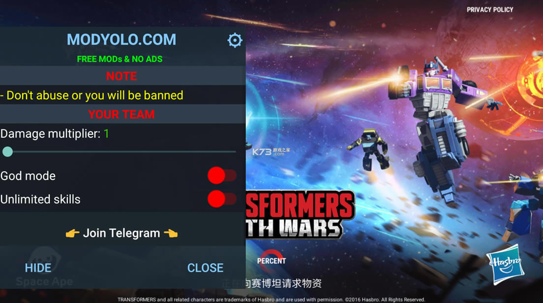 威震天和他的攻击霸天虎的队伍袭击了地球,肆虐地球的自然资源综合energon的,的变形金刚比赛的首选燃料。擎天柱已派出汽车人地球的战术团队,希望能够对抗狂派的威胁。战斗地球已经开始。谁的一边是你? 组装传奇变形金刚的终极团队robots-包括擎天柱,威震天,大黄蜂,钢锁,声波,红蜘蛛和更多。你会加入与霸天虎或盟军与汽车人的力量?选择你的身边!建立坚不可摧的基地。