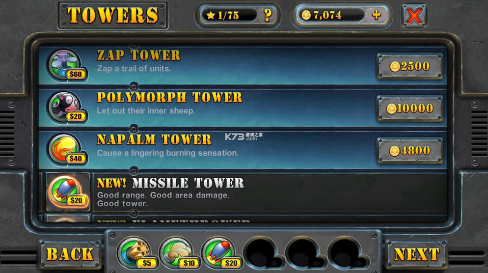 炮塔防御2游戏有种类丰富的防御塔,每种防御塔都有对应的效果