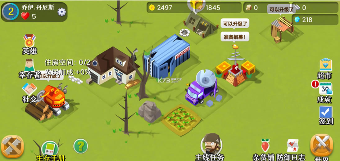 招募幸存者们,有战士,枪手,医生,农民等十几种幸存者各司其职