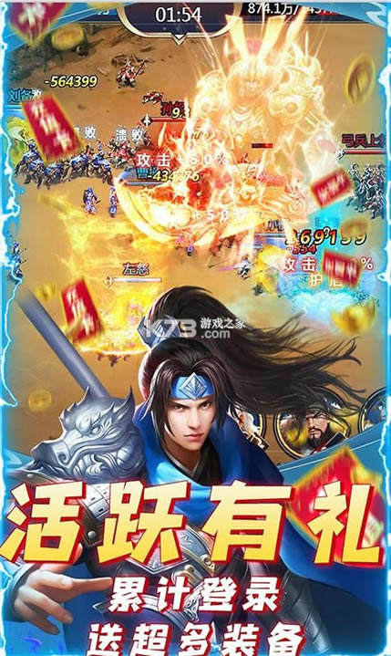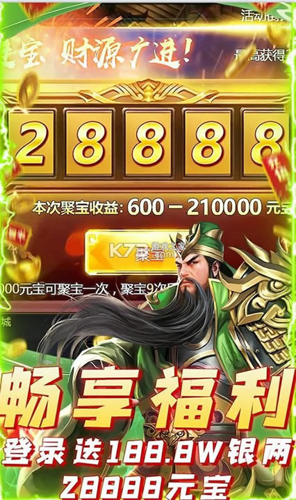 新手礼包:黄忠*1 元宝*888 突破丹*888 极品经验书*18 银两*100W