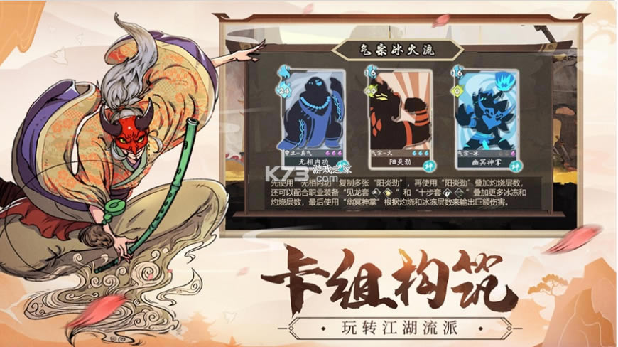 卡组构筑为核心玩法,轻度的roguelike,结合了随机武侠事件.随机道具.冒险.养成等元素,打造了一款游戏性高的武侠策略卡牌游戏。
